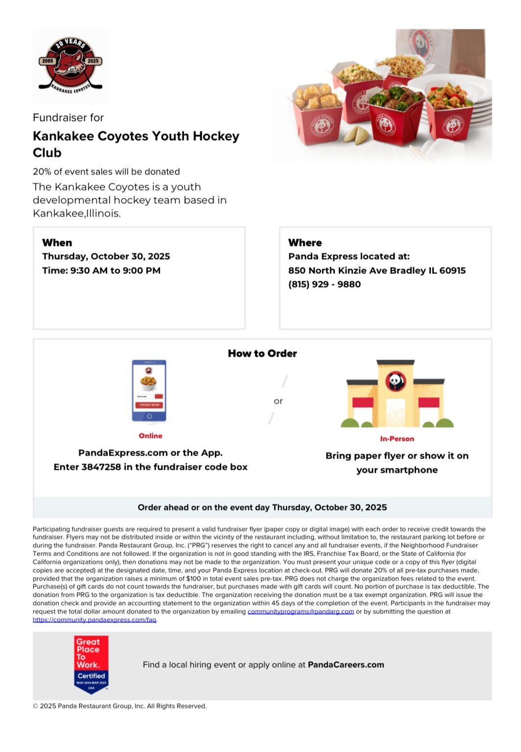 In person Orders Due 10/31, with Delivery the week of 11/17.